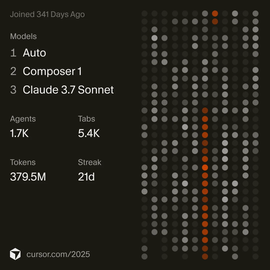 AI 개발 환경인 Cursor에서도 트렌드에 맞춰 한 해 돌아보기 기능을 제공한다.